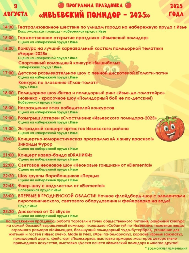 Программа праздника "Ивьевский помидор-2025"