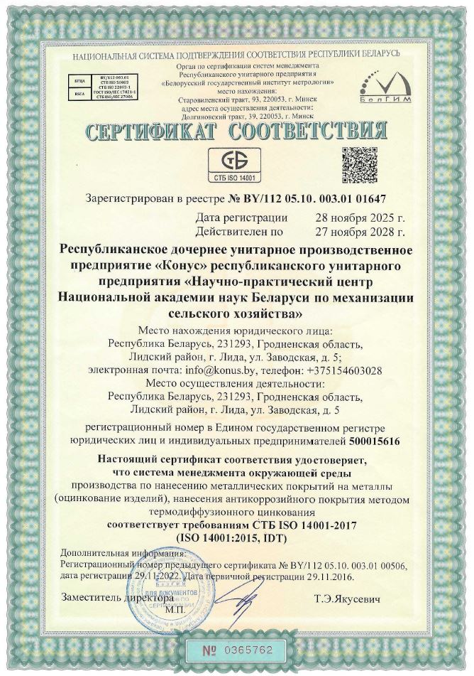 сертификат соответствия СУОС требованиям СТБ ISO 14001-2017